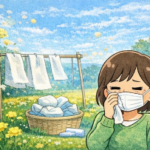 青空のもとで洗濯物をおひさまに干し、日向の香りを楽しむ——