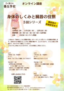 【オンライン講座】10月〜12月 3回シリーズ「身体のしくみと臓器の役割」