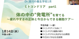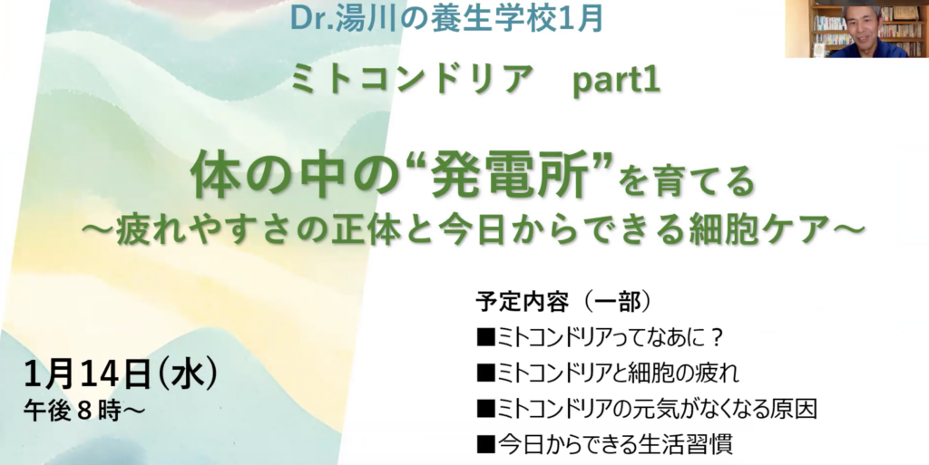 【オンライン講座】1月 ミトコンドリアシリーズ「体の中の“発電所”を育てる 〜疲れやすさの正体と今日からできる細胞ケア〜」