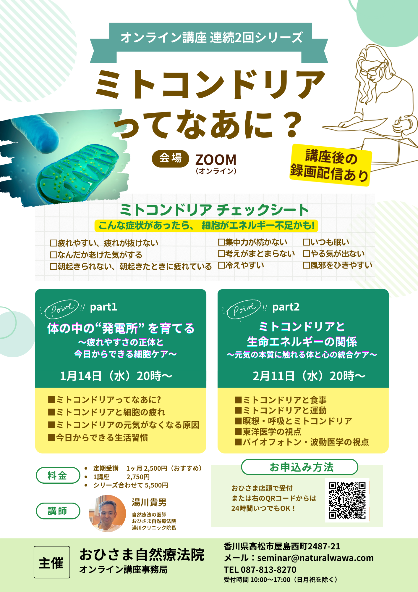 【オンライン講座】1月2月 連続講座「ミトコンドリア」シリーズ