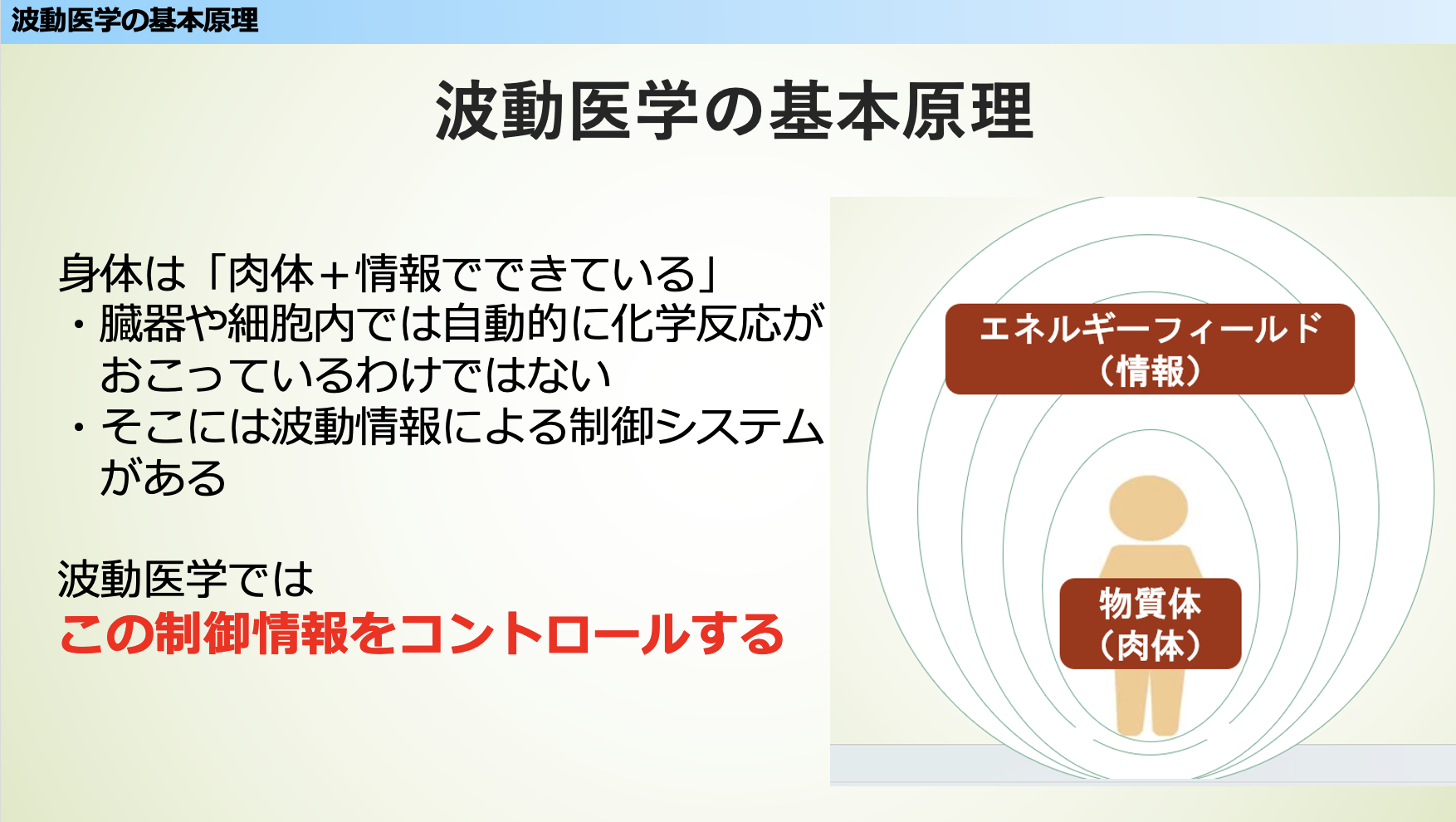 波動医学とは、この「制御情報」を整えることで、体の中から変化を促すアプローチなのです。