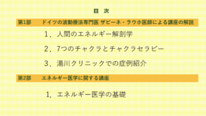 講座事務局の松本です。 先日、当施設主催 BICOM波動医学研究会の第1回講座が開催されました。(オンライン開催の研究会です!) 第1回のテーマは「エネルギー解剖学 × バイオレゾナンス ― チャクラと周波数から読み解く […]